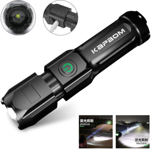 Experimente a Lanterna Recarregável USB KAPBOM e ilumine seus caminhos com confiança e praticidade!